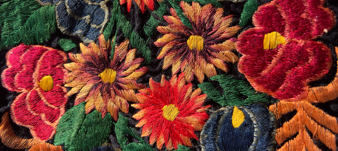 The ancient Mayan art of weaving ornate images of brightly colored flowers, animals, and people into geometric designs reaches back to pre-Columbian times. These embroidered garments continue to highlight the artistry and dexterity of the traditional backstrap loom weavers. To make their beautiful brocade art accessible to Western fashion, they adapted to more modern needlepoint techniques first introduced during the European colonial era.
