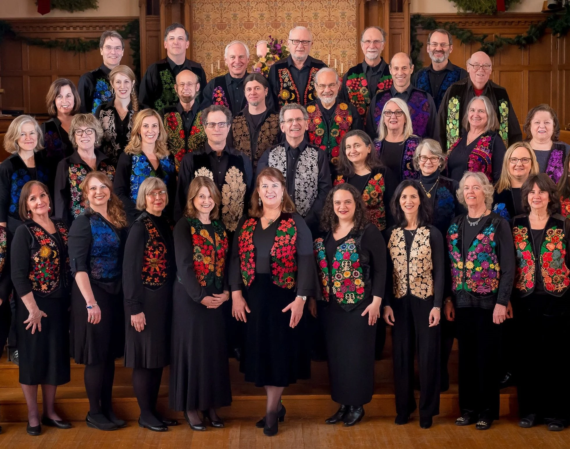 The wonderful floral vests we wear hail from the market town of Chichicastenango, Guatemala, a K’iche’ Mayan cultural center famous for its textiles. Purchased for the group by an early member who was traveling in Central America in the 1990s, our beloved vests have long been the signature concert attire of the Halalisa Singers.